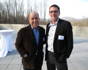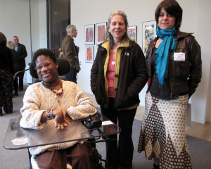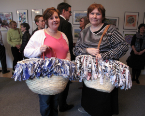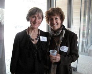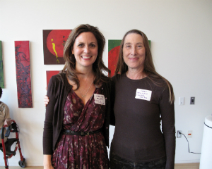 Amy Krzanik reports from Williamstown.The Clark Art Institute's Stone Hill Center hosted a large and happy crowd of supporters on Thursday night, April 10 as Community Access to the Arts (CATA) opened an exhibit of work by its A.R.T. students. The A.R.T., or Artistic Realization Technologies, program is a painting workshop for area adults with profound physical disabilities. Many of the students and their teachers were on hand to introduce the work and revel in its vibrant beauty. A bevy of unique gifts such as necklaces, magnets and other items emblazoned with the students' work were for sale to help raise funds for the A.R.T. program. An after-party at Hops and Vines featured food from Deborah Gallagher Catering and guest bartenders, with all tips going to benefit CATA and its students.(Shown above: Executive Director Margaret Keller and Founding Director Sandy Newman.)