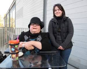 Margaret Keller and Ron Gallagher; Lisa Loomis and Sharon Boyd show off their CATA totes.