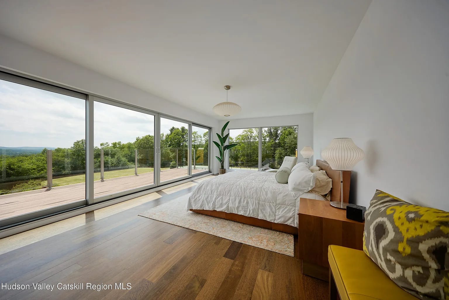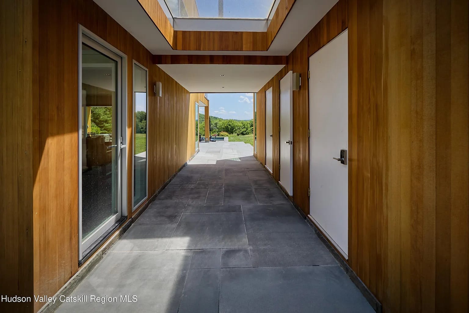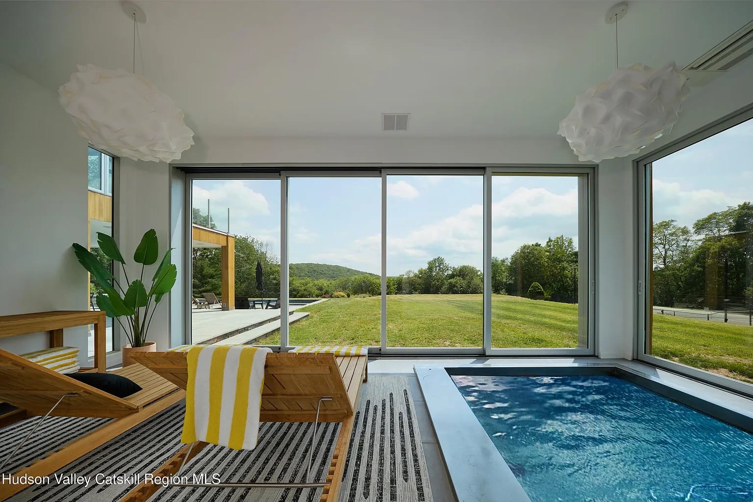 Here’s a very pretty contemporary/modern house called “Cedar Hill” at 33 Ford Road in Old Chatham. It doesn’t have an original build date in the listing, but a massive renovation was complete in 2023, and it has all the luxury hallmarks of a newer build—indoor pool, open living space, windows and angles that take advantage of the views, and a chef’s kitchen.