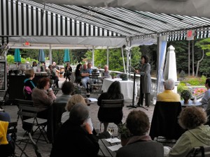 The Mount, writer Edith Wharton's magnificent property in Lenox (executive director Susan Whistler, at right), was the scene on Wednesday August 25 of a party celebrating the release of an audio book, Edith Wharton on Audio, Vol. 1, three stories by Wharton read by Shakespeare and Company’s Jonathan Epstein (The Winter’s Tale), Tod Randolph (Richard III) and Berkshire Theatre Festival’s Tara Franklin (The Guardsman). The project is a collaboration between The Mount Press and Berkshire Media Artists (BMA Studios). Why a mid-week celebration? So contingents from five theater companies (Shakespeare & Company, Berkshire Theatre Festival, Barrington Stage, WAM, and the Wharton Salon) could attend.