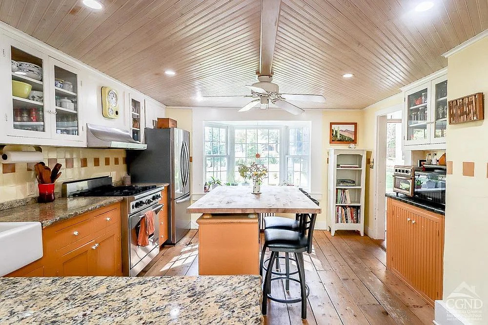 Built-in bookcases, cabinets and wide-board plank floors are part of the original charm of this Chatham farmhouse built in 1830. It has three bedrooms and two bathrooms, updated kitchen, a screened porch. and a deck. Outbuildings include a heated studio and a newly constructed two-car garage. Listed at $699,000 by Beach & Bartolo.