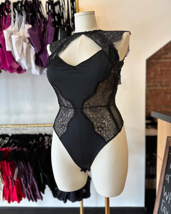 The entire range of sizes has been selling consistently, she says. The boutique carries bra bands in sizes 28-54 and cups A-O. Bras from the brand Harper Wilde have been flying off the shelves, along with lingerie from Oh La La Cheri and Thistle and Spire, which comes in sizes XS-3X. Cheeky also carries a selection of slips, robes, stockings, and underwear, bathing suits in the warmer months, and sex toys displayed in an alcove toward the rear of the boutique.