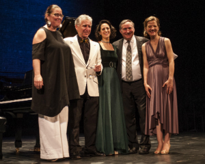 Violinist Peter Zazofsky with Joan Tower and Yehuda Hanani; Muskal, Hanani, Gutman, Zazofsky and Jokubaviciute on stage. (Photos by Alena Bergmann)