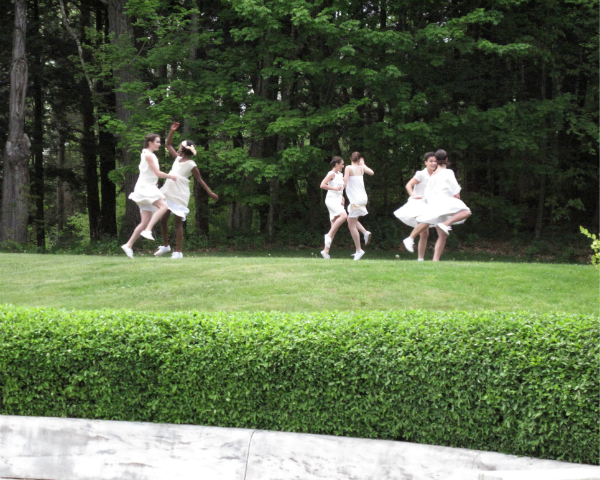 Berkshire Pulse dancers perform on the Chesterwood lawn before dancing around the fountain.