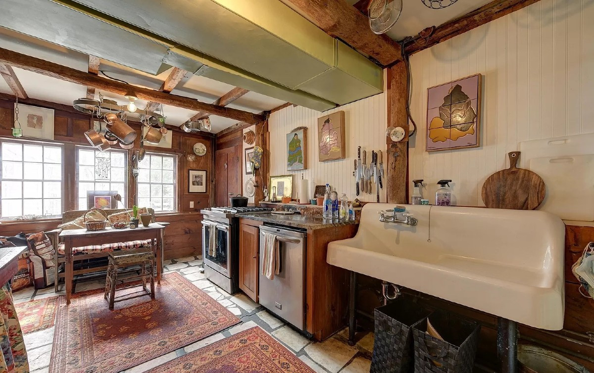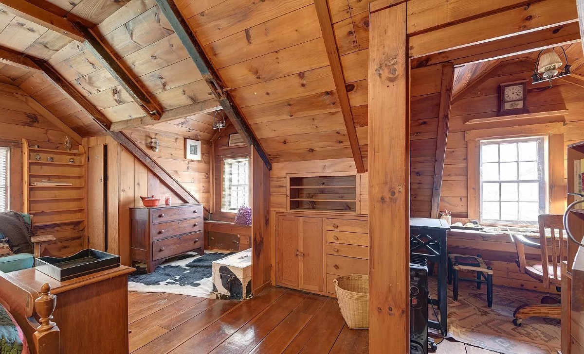 Originally called "the Baker House," Chestnut Lodge is a post-and-beam style Cape on over three acres in Lee that has gardens, pasture and stone walls. There are four bedrooms and four bathrooms, fieldstone fireplaces, wide-plank floors, an intriguing tower, a barn with a summer apartment, and a cottage. Listed at $599,000 by Maccaro Real Estate.