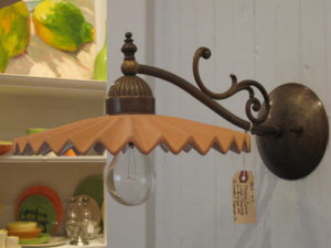 Hosta-leaf spoons, silver-plated copper, $18 each; gold-plated, $20, at Lili and Loo, 259 Warren Street, Hudson; 518.822.9492; Italian copper sconce with ceramic shade, $440, at Tres Belle Decor, 22 Walker Street, Lenox; 413.551.7091