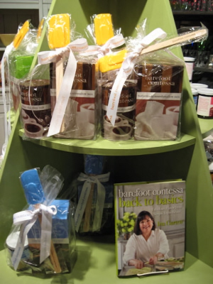 Sheepy fleece pjs and robe; $34 (top), $34 (pants), and $70 (robe); Deeply Dark Orange Chocolate Sauce, $6; Back to Basics cookbook, $35, bundled Hot Chocolate and Homemade Marshmallow mixes, $32, and likewise Outrageous Brownie and Decadent Fudge mixes, $25.95, all by Ina Garten, aka The Barefoot Contessa at Pine Cone Hill, 55 Pittsfield Road, Lenox; 413.637.1996.