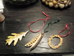 Michael Devine's signature home accessories collection, $35 - $120; tree ornaments (or jewelry); oak leaf, $20; peapod, $40; and wreath, $20, at Michael Devine, 10 Broad Street, Kinderhook; 518.758.1355.
