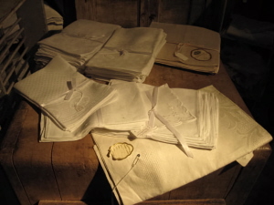 Decoupage cubes, $125, and boxes, $400, by Thomas Malic at Gris, 614 Warren Street, Hudson; 518.828.1611; Vintage table linens, some never used, ranging from 52"x52" worked damask cloth, $20, to a dozen worked damask napkins, $75, at Gypsies, 624 Warren Street, Hudson; 518.858.2229.