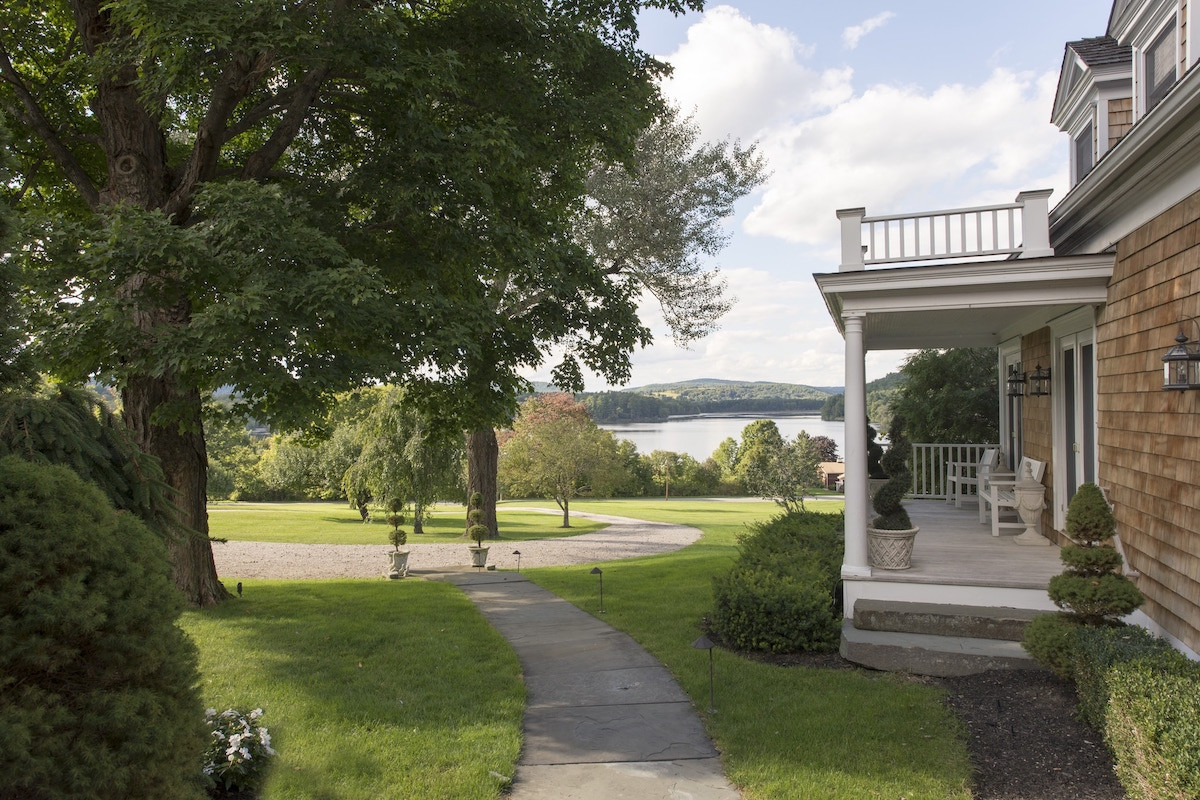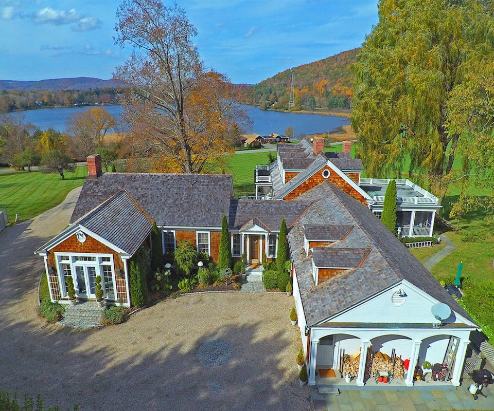 A home with "simplicity in form and grandeur in scale" overlooks Indian Lake in Sharon.
