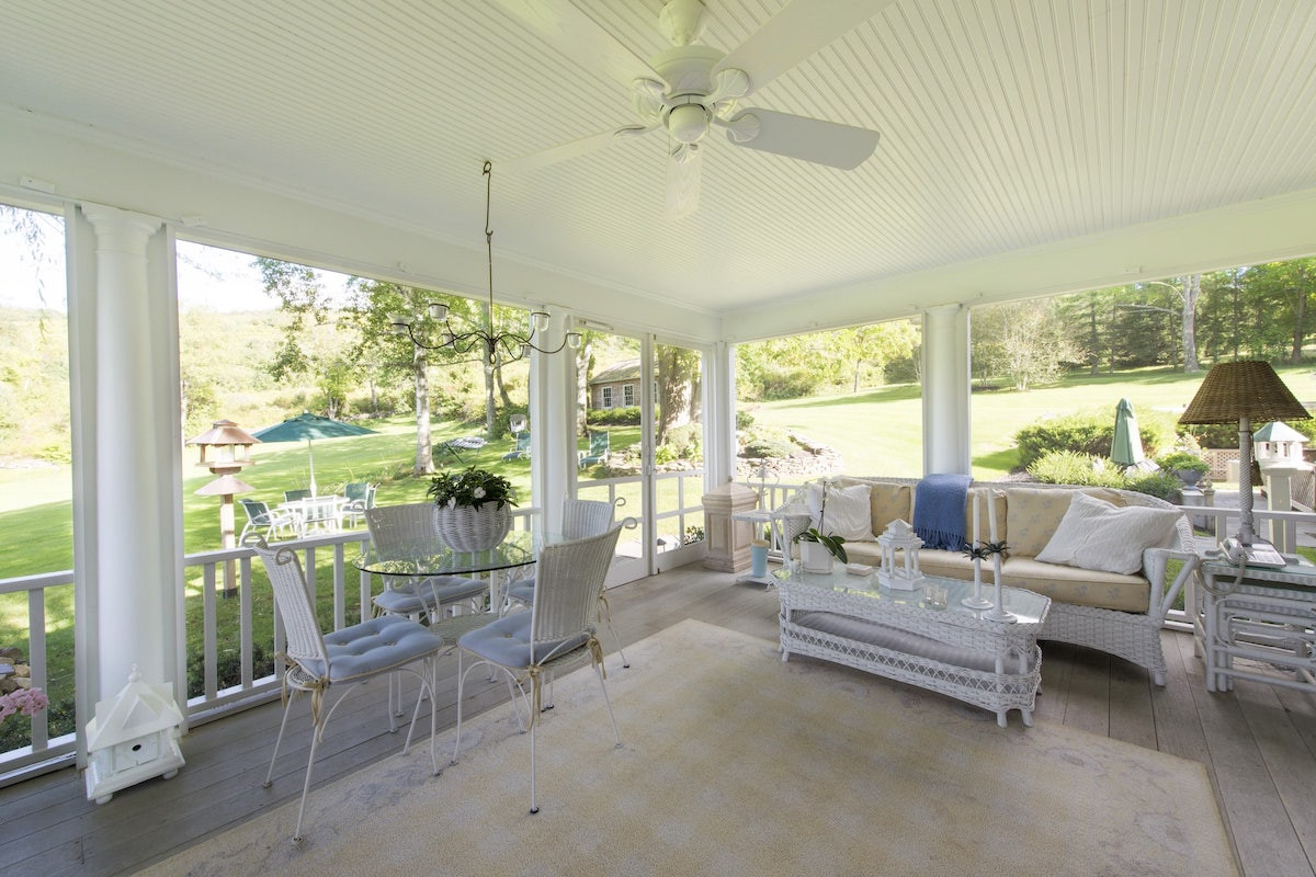 This New England shingle-style home in Sharon is infused with the elegance of a French country manor. There are three bedrooms and five bathrooms in 4,171 square feet. The main foyer sports an antique brick floor; chef's kitchen opens to an oversized screen porch; and the dining room has a wood-burning fireplace.The estate offers many more amenities. Listed at $2,585,000 by Elyse Harney Real Estate.