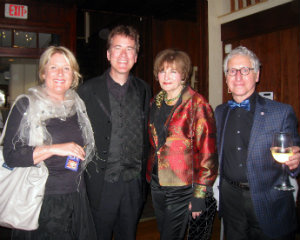 Lisa Green reports from Great Barrington. Close Encounters With Music closed out its season with its annual gala concert on Saturday, June 11 at The Mahaiwe Performing Arts Center. This year’s theme was “Music That Shook The World!" and its multi-media approach, complete with vintage film and narration, rather shook up the regular concert experience as well. Following the concert, patrons regathered at the rustic Wyantenuck Country Club to enjoy a food-filled reception. Close Encounters With Music is in its 24th year presenting thematic concerts of chamber music accompanied by the always-enlightening commentary of artistic director and cellist Yehuda Hanani. [Above, author/commedienne/audiobook narrator Alison Larkin, who at the concert read passages from the memoirs of George Anthiel, aka the early 20th-century’s “bad boy of music;" pianist Michael Chertock, Annette Miller, an actor who will play a featured role this year at Shakespeare & Co., and cellist and artistic director Yehuda Hanani.]