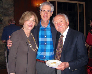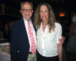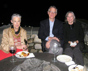 CEWM board members Purcell Palmer and Michael Wise along with Susan Pettee enjoy the lovely evening from the terrace; Elaine Cohen, Zvi Cohen and Beatrice Cohen, owners of Our Daily Bread in Chatham, surround the inimitable Judy Grunberg.