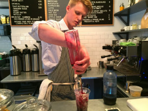 The case of prepared foods beckons with meals to go or to consume on premises, and the menu of made-to-order breakfast and lunch items go from the expected (ham and cheese croissant, breakfast sandwich, daily soups) to the delightfully unexpected — avocado toast with feta, lemon and chili flakes; beets, feta, black olives on focaccia; and roast beef, crispy shallots, watercress and tomato. In place of juices and smoothies, there’s an intriguing daily house soda that Provisions manager Lucas Smith creates from scratch. The day I visited, it was grape soda — Smith had muddled fresh concord grapes — but other flavors have included cucumber/mint and carrot/pear.
