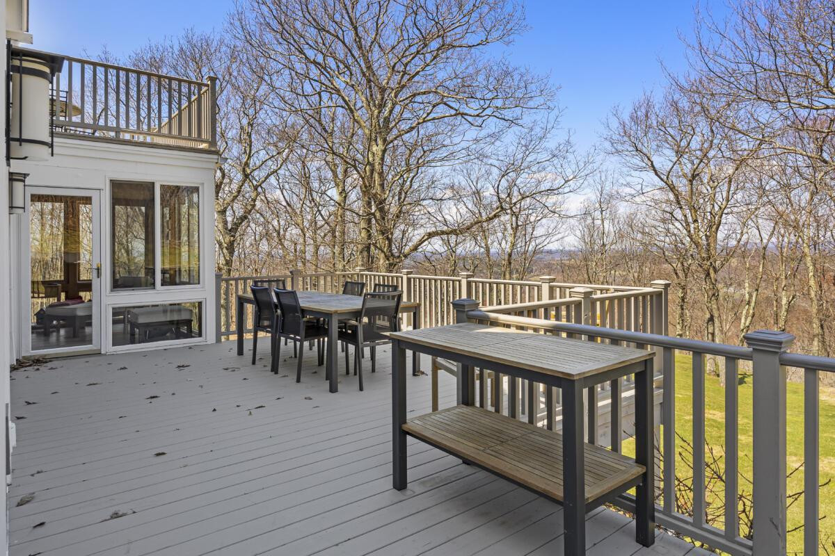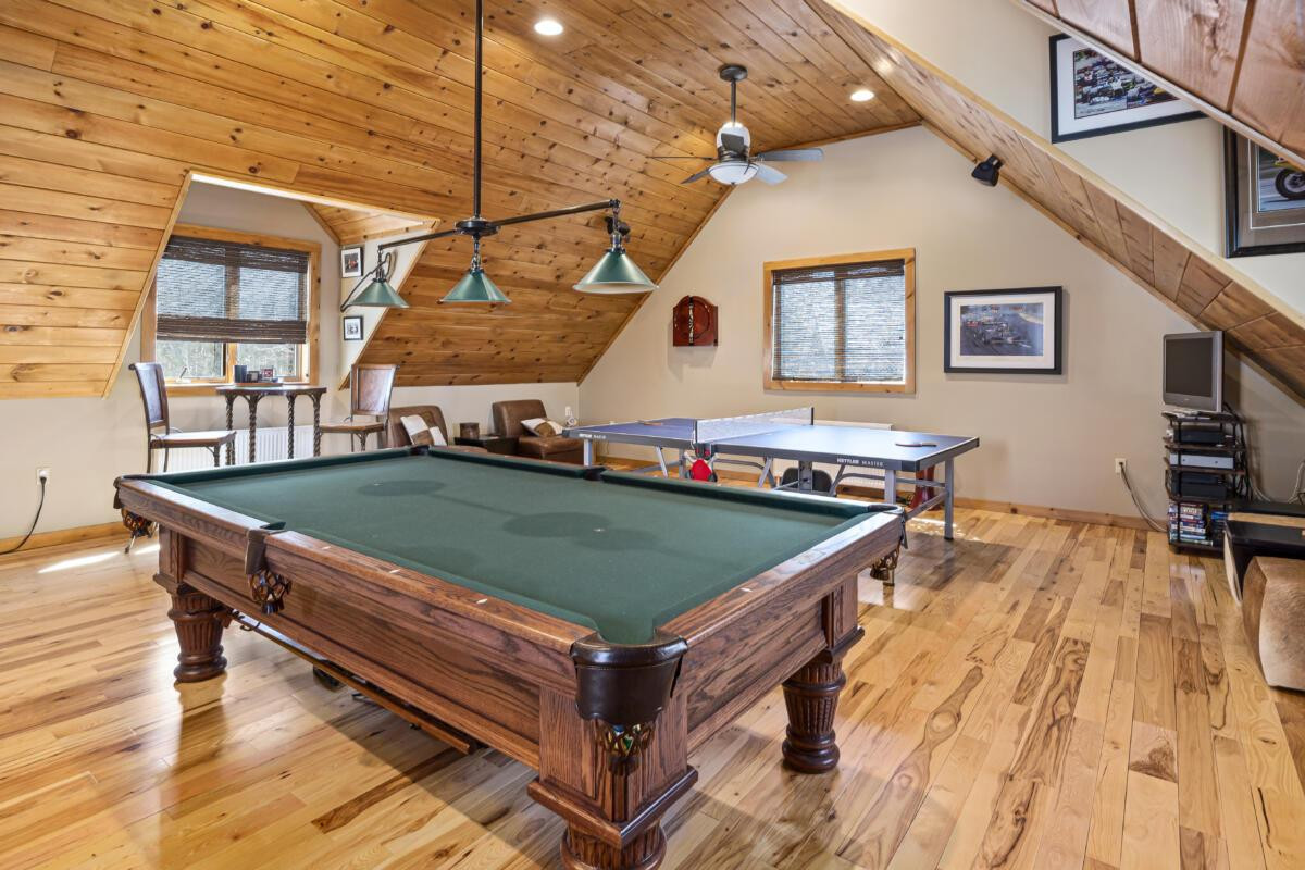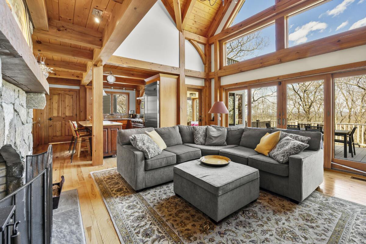 A modern mix of styles — Craftsman, Colonial, and Contemporary — are imbued in a four-bedroom, five-bathroom home in East Chatham. The vaulted living room ceiling features a two-story stone fireplace. Amenities include a sauna, wine cellar, attached garage (and a detached four-car garage), game room, deck, patios and a screened porch. Its location makes it convenient to skiing and Tanglewood. Listed at $1,575,000 by Copake Lake Realty.