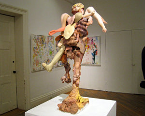 Exhibiting artists Peter Keitel and Arlene Boehm, with Bill Sinclair, a board member of the CCCA; Linda Horn's plaster cast form merited the show's third prize.