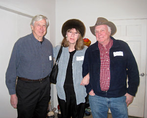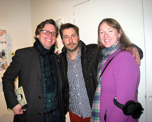Art collector Lee Linderman, who purchased the painting behind him, and Patrick Brown, a filmmaker and artist; Myra Lobel, who was thrilled that her painting sold.