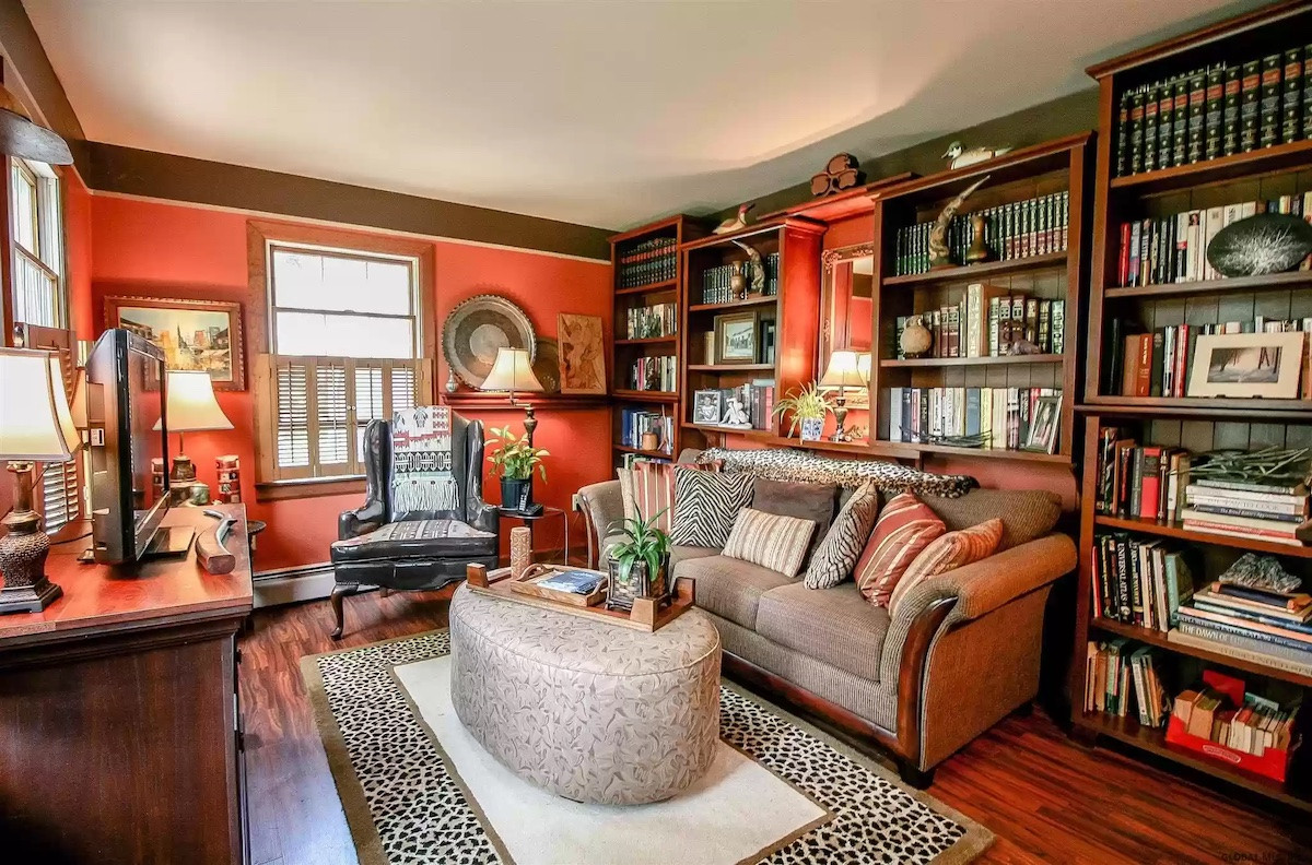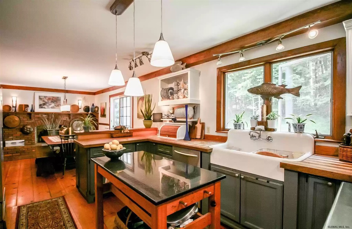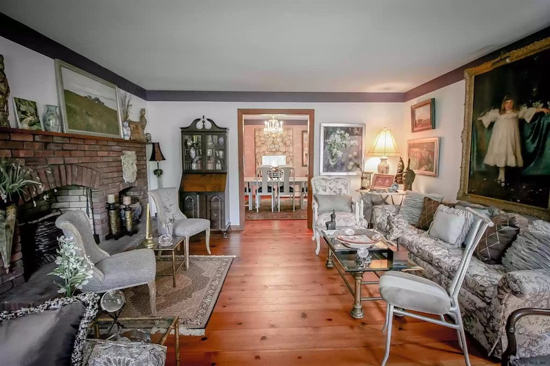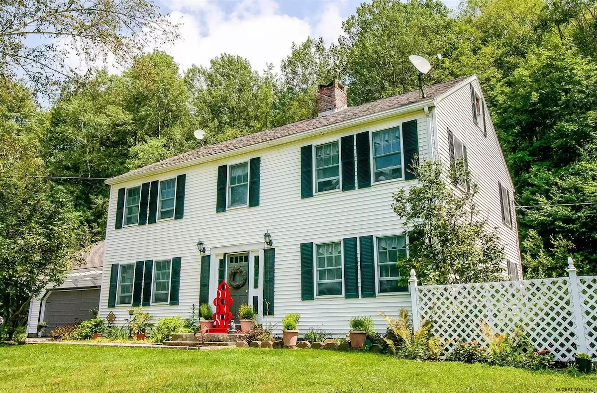 Minutes from Chatham and on the border of the Berkshires, this Colonial has four bedrooms and three bathrooms on a six-acre lot. There is a large kitchen, formal dining room, and living room with a huge fireplace. The patio in back looks out to a private yard. Listed at $649,000 by Beach & Bartolo.