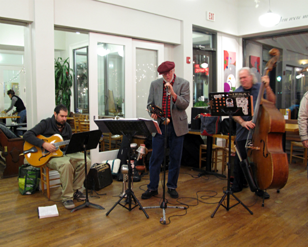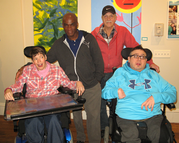 Artists Cathy Crofut and Brian Bernacki (seated) with Jean Bede and Jim Bernardo.