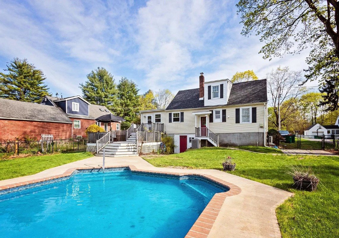 Built in 1948, this Poughkeepsie Cape has been renovated top to bottom. There are four bedrooms and two bathrooms. Recent updates include central air mini splits, new furnace, roof, kitchen, bathrooms and refinished hardwood flooring. Outside is a Trex deck, saltwater pool and fully fenced yard. Listed at $450,000 by Hudson Home.
