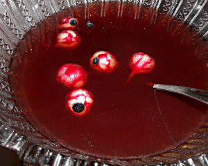 Lenny Kalikow as Mr. Toad, in a head he had made 30 years ago (which he used to try to get on the David Letterman show); creepy eyeballs swimming in a blood-red punch.