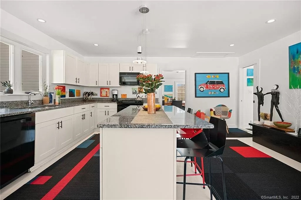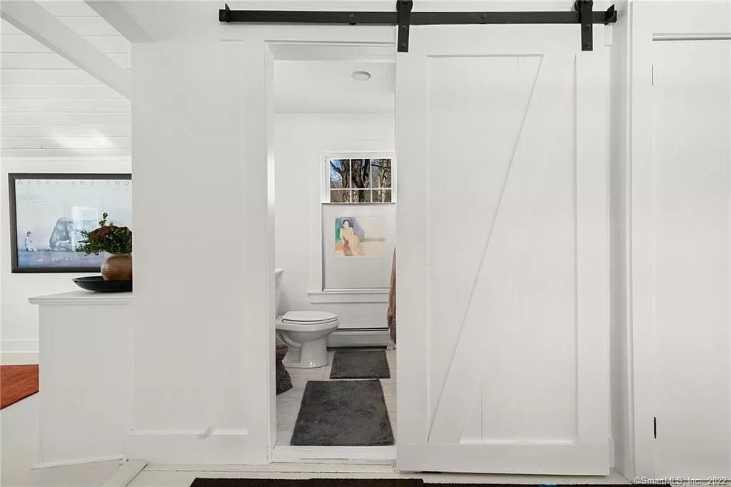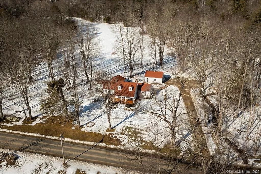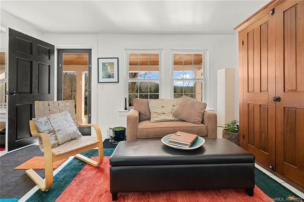 On Music Mountain Road in Falls Village, an antique cottage has been renovated to its contemporary style. It has two bedrooms and two bathrooms, a spacious kitchen, and covered front porch and a deck. There is two-car garage. The property encompasses 26 main acres and a separate 14 acres across the road. Listed at $995,000 by William Pitt Sotheby's International.
