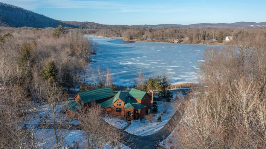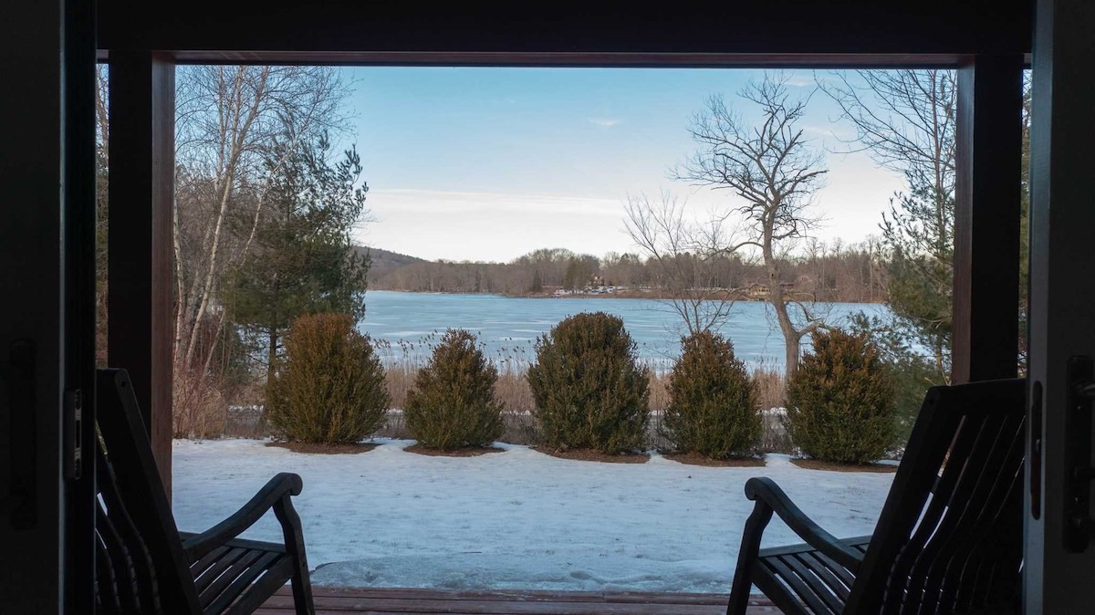 Built in 2002, a lakefront house in Pine Plains is representative of an old seasonal family cabin, but is an elegant iteration for year-round living. It has four bedrooms and four bathrooms, open concept layout, vaulted ceilings, harwood floors, native stone fireplace, a wine cellar, and many windows to admire the view of Stissing Lake and Mountain. Listed at $1,140,000 by Berkshire Hathaway HomeServices Hudson Valley Properties.