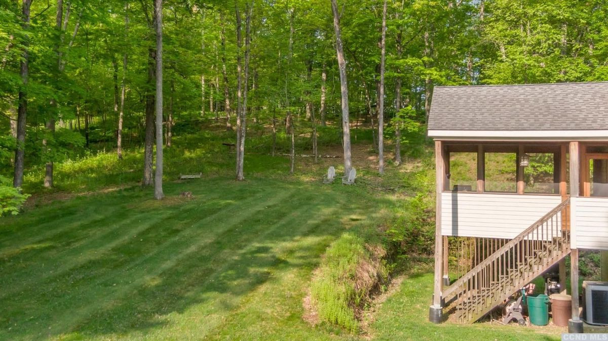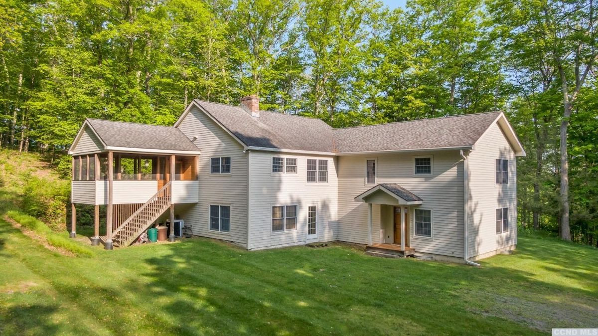 This 3,000-plus square-foot home is set on a wooded hill at the end of a private drive in Ancramdale. With the 2008 renovation, it has four bedrooms and three bathrooms, a family room with a fireplace, an office, and spacious entertainment spaces. The kitchen offers a Viking stove, Subzero refrigerator, wet bar and stone countertops. The house has a screened-in porch. Listed at $875,000 by Compass.