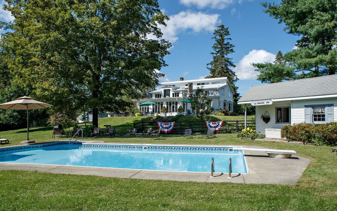 A five-bedroom Colonial has five bedrooms and four bathrooms, hardwood floors, stone fireplace, updated chef's kitchen and oversized dining room. The first floor also houses the library and first-floor primary suite.The setting includes two ponds, rolling lawns, mature landscaping and gardens to enjoy from the bluestone terrace overlooking the pool, pool house, gazebo, and tennis court. Listed at $1,100,000 by Houlihan Lawrence.