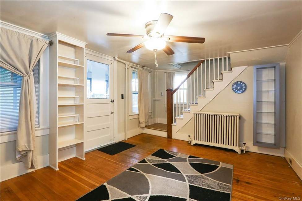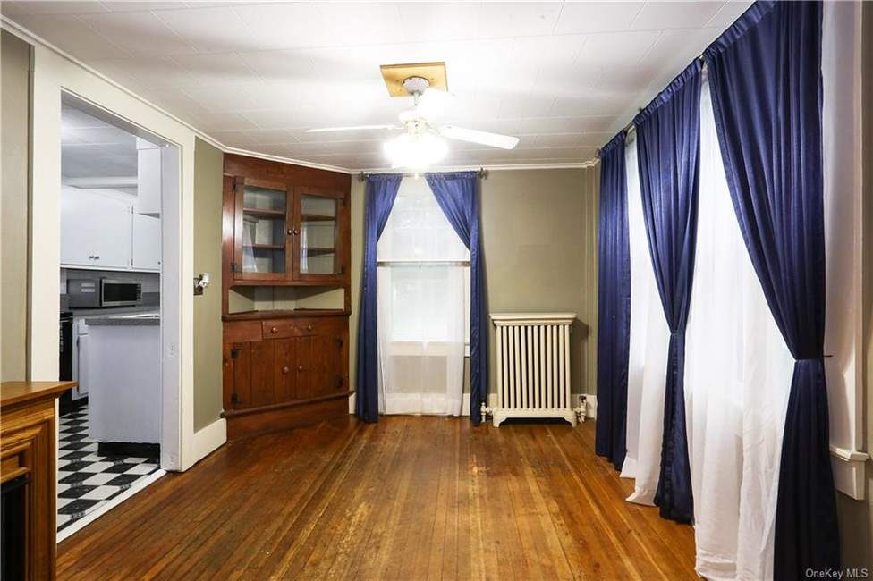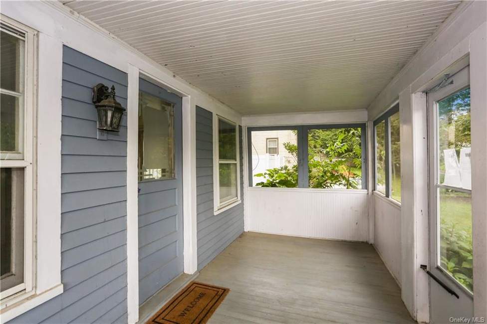 In New Milford, this three-bedroom, one-bath, 832-square-foot Cape is close to town, shops and a park. There's an enclosed porch, and beyond that, a living room with custom shelving, and hardwood floors throughout. Adjacent to the galley kitchen is a formal dining room. Built in 1928, the property includes a one-car detached garage that needs a bit of TLC. Listed at $165,000 by RE/MAX Town & Country.