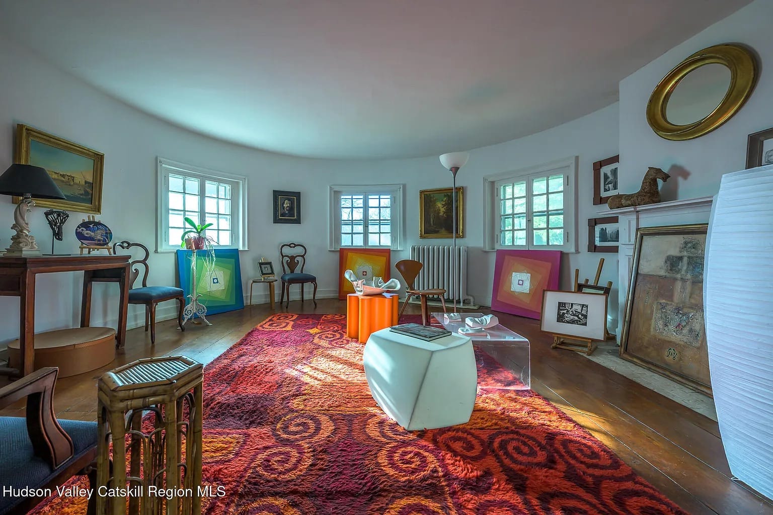 Here is a special, crazy one that draws on esoteric architecture for its country charm. 14 Fabiano Boulevard in Hudson is so curvaceous it’s known as the “Old Turtle House.” Built in 1820, it’s a rare example of Italian/Russian-inspired Federal architecture, sitting above the road on two acres, and is on the National Register of Historic Places. It’s a definite estate, with a circular driveway, old fireplaces, and 3,180 square feet of one-of-a-kind rooms with curvy glass.