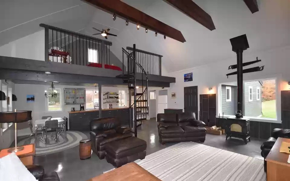 The one-bedroom, one-bathroom custom-built cabin in Savoy offers a bedroom loft and open concept first floor with an expansive kitchen and spacious living room. There are polished concrete floors, radiant heat and a large, partially wooded lot. There is also potential for a first floor bedroom as it is partially finished. It's close to outdoor attractions — ski resorts and snowmobile trail systems. Listed at $324,900 by Berkshire Dream Home, Inc.
