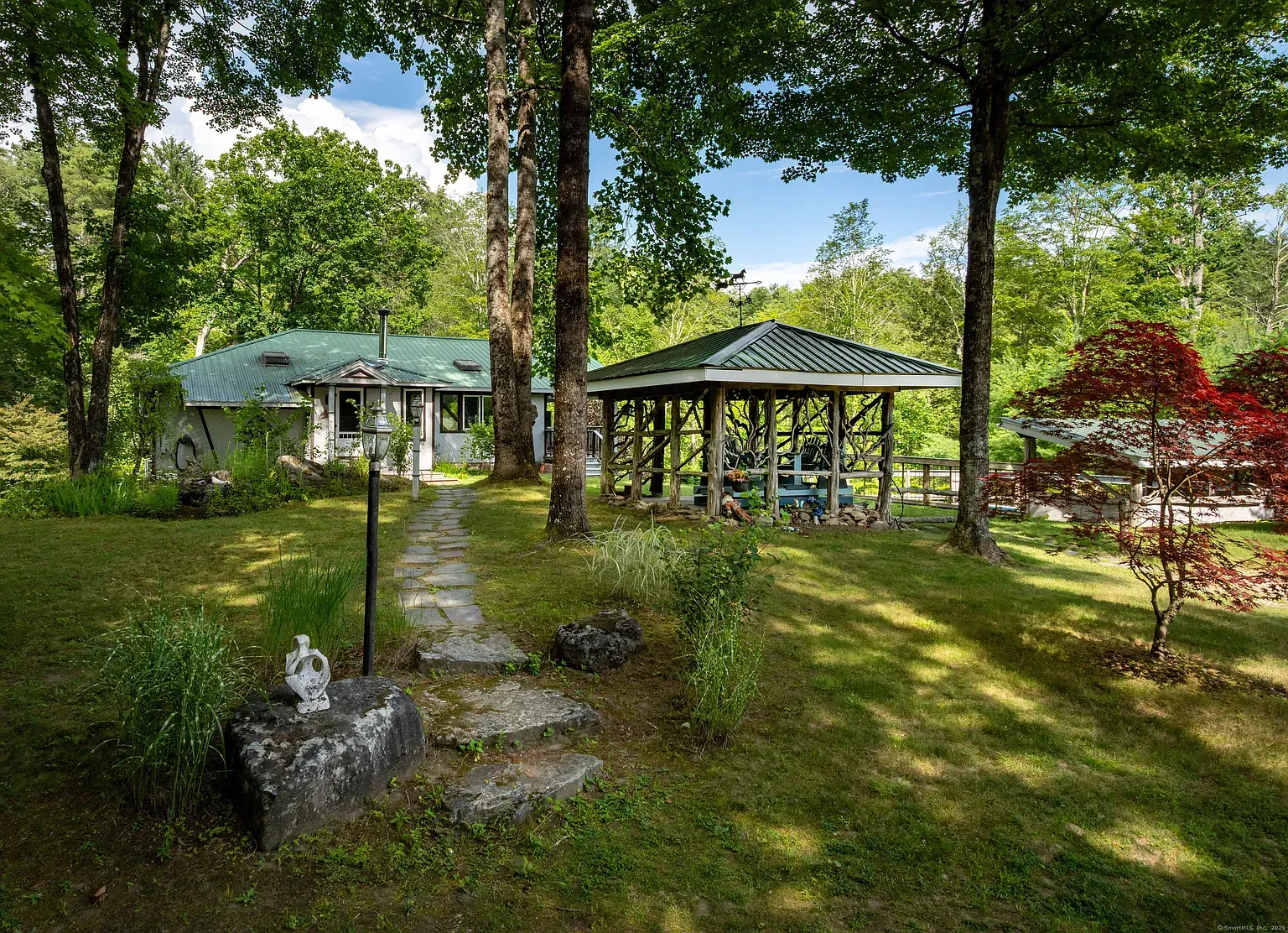 Outside, an inground pool with a covered lounge area sits just off the main living level, and a stream runs through the three wooded acres. The handcrafted gazebo is a nice touch too. Shared lake access to Lake Washinee, the westernmost of the Twin Lakes, whose name in the original Mahican translates to "smiling water," makes this spot a center for summer fun.