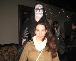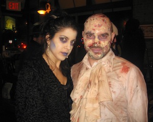Rachel Louchen reports from Pittsfield. Zombies descended upon Dottie's Coffee Lounge on Saturday, March 7 to celebrate the release of Gabriel Squailia's debut novel, Dead Boys, which tells the story of corpses and the underworld. Guests were painted and dressed in varying stages of decay as they enjoyed food, drinks and music from DJ Casey Meade. An animated staged reading was performed by the author and his friends, and signed copies of the book -- hot off the presses -- were available for purchase. Turnout for the event, thrown by Darling Event Design, was strong, as friends came out to support Pittsfield's Squailia, also known as DJ BFG, a passionate supporter of arts and culture in the region. Above, the author with his wife, Najwa Squailia.