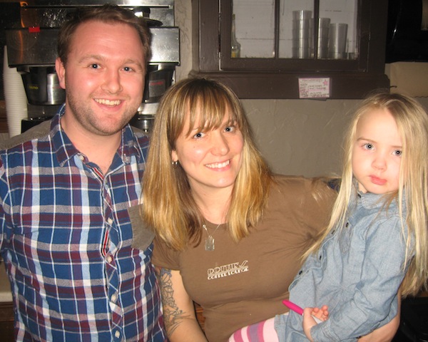 Jared Vello and Dottie's owner Jessica Lamb with her daughter.