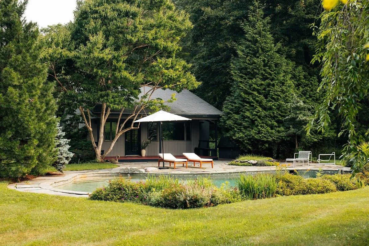 A Mid-Century Modern home sited on 11 acres of meadow, wildflower fields, and forest in Millbrook.