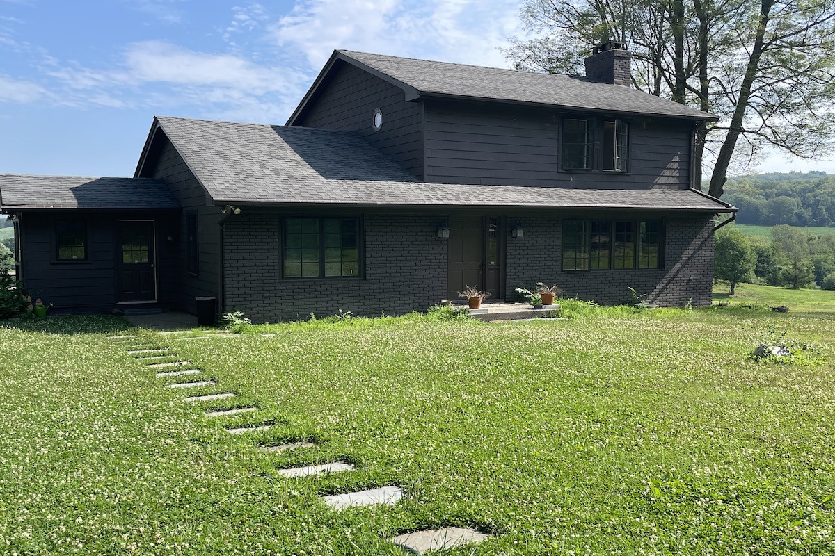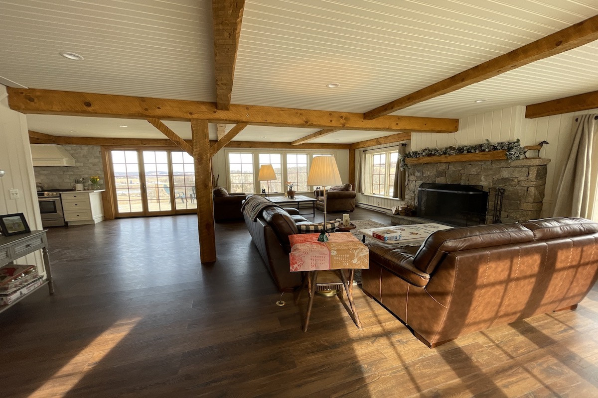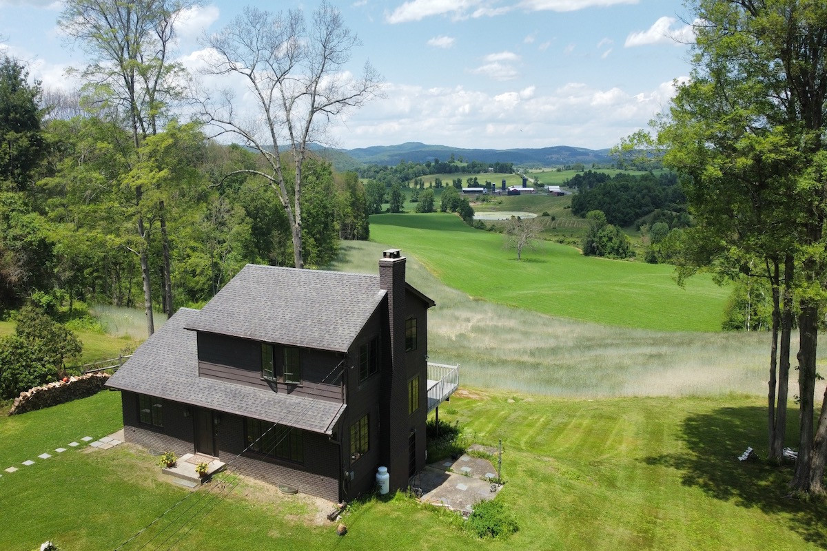 Offering a valley/mountain view, Deer Hill features three bedrooms and two bathrooms on over five acres of protected land. It has an open concept layout with posts and beams, a stone fireplace, and new windows to take in the view. The kitchen is also new. It's close to Millerton, Copake, Hillsdale, Pine Plains, and Hudson. Listed at $745,000 by Elyse Harney Real Estate.