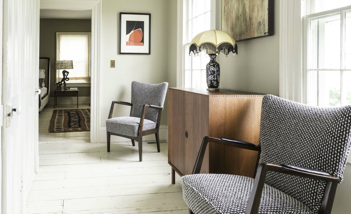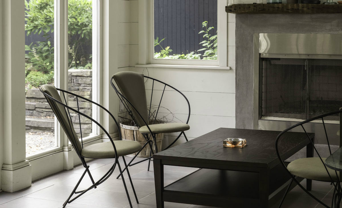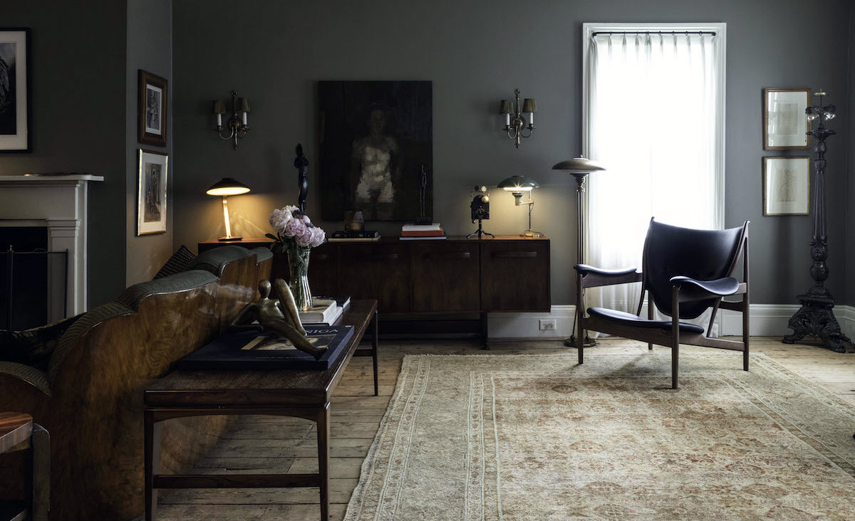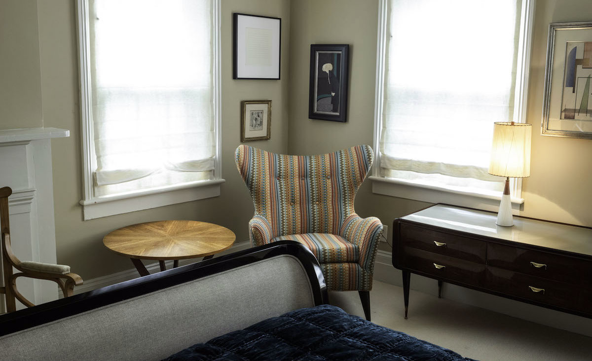 They sheepishly admit that their historic Hudson residence (a second, more contemporary glass home in Copake has a very different atmosphere), in addition to being their home, is indeed a laboratory to test drive pieces for the next chapter in The Maker complex, the much anticipated opening of The Maker Restaurant and Hotel. Damien suggests that the ultimate inspiration for both the private and public environments that they share is “a new way of looking at old-world aesthetics,” built around their mutual love for combining mid-century furniture with industrial, neo-classical and bohemian influences. Most important, though, is physical comfort.