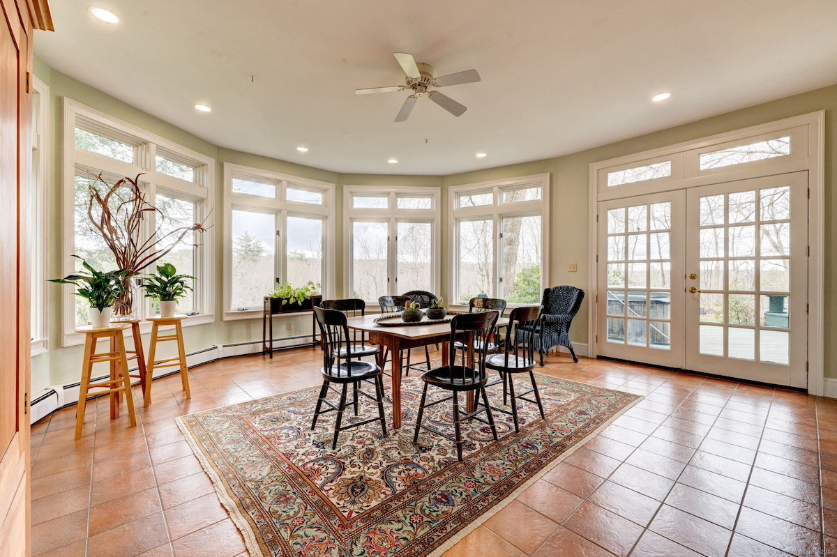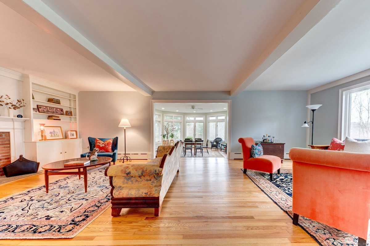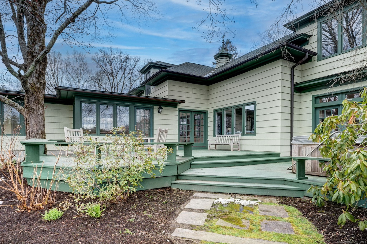 Built in 1898, the historic former carriage house sits on 3.39 acres. Extensively renovated over the years, it's been modernized while preserving classic details. A central hallway leads to a spacious open living room with a garden view. There are four bedrooms and four bathrooms, formal dining room and cozy den, chef's kitchen and bonus room. The deck offers southeastern views of the neighboring meadow. Listed at $1,595,000 by William Raveis.
