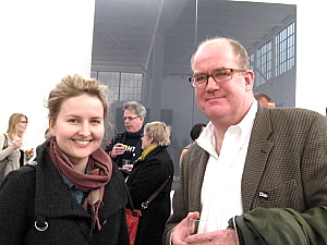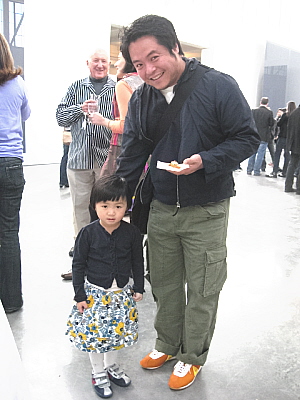 DIA:Beacon normally specializes in exhibitions of large-scale pieces that are suited to its expansive, skylit galleries—all 240,000 square feet of them. But there is one current exhibition that bucks that venerable institution's tendency to think big: Koo Jeong A’s Constellation Congress: A Reality Upgrade & End Alone, a sculpture consisting of 5,000 tiny rhinestones apparently scattered (actually, quite carefully angled) on a grassy 2-acre expanse of lawn that can be viewed by museum visitors only through the floor-to-ceiling windows in one of the galleries. When the light is right, that lawn sparkles plenty. At night or on a cloudy day, one must take it on faith that the piece even exists. Its uniquely ephemeral nature was the topic of exhibition curator Yasmil Raymond's gallery talk on Saturday, April 2. (The installation continues through May 2.) Fortunately, the sun—and therefore the piece—shone. Afterward, suitably dazzled members, including Sangdok Baak, above with his daughter Jiah Baak, who informed RI that she is a princess, gathered for a reception in a gallery containing Gerhart Richter's Six Gray Mirrors.