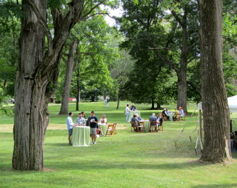 Amy Krzanik reports from Claverack. The Alliance for Positive Health’s annual Columbia–Greene Garden Party is always a well-attended event and the cause is one that many hold close to their hearts. An added draw is that the APH (formerly the AIDS Council of Northeastern New York) holds the fundraiser at a different, magical property each year. This year, more than 400 guests were able to tour the home and grounds of famed film director James Ivory on Saturday, Sept. 2. Simons Catering created fanciful hors d’oeuvres, Kelly Mittleman & Friends played their hearts out, and the silent auction, another of the event’s big draws, featured hand-chosen pieces of art, furniture, fashion, personal care packages, dinners and overnight stays.
