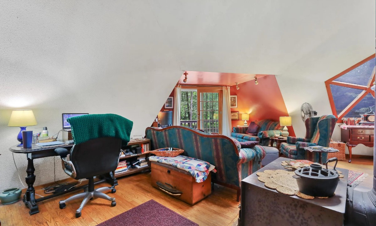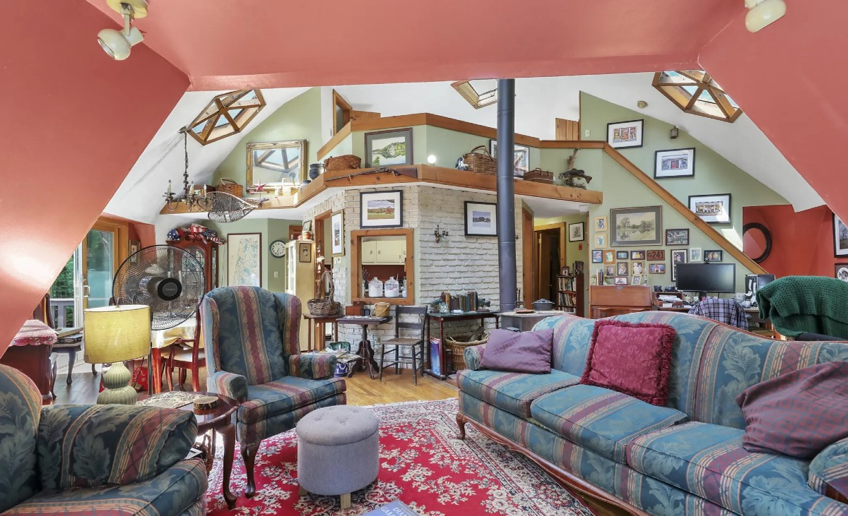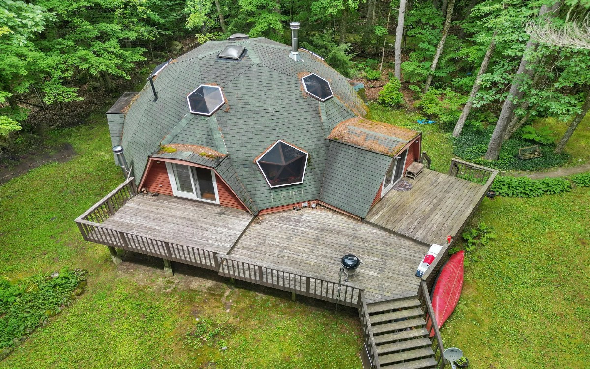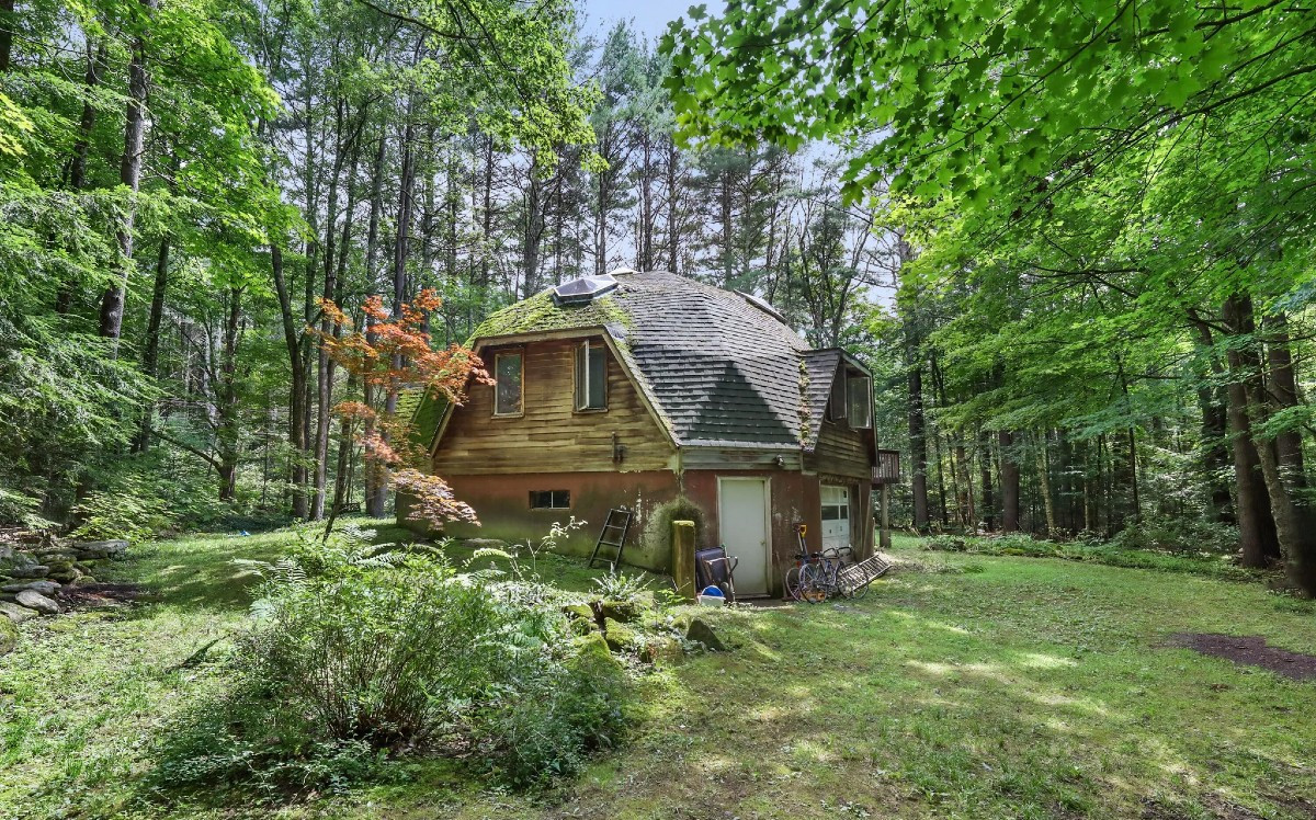 A dome home in the Otis forest on 4.1 acres is for sale "as is." Within its rounded shape, it features three bedrooms, three bathrooms, an almost wraparound deck, a full dry basement with a laundry room, workshop, and one-car garage. Paths lead to an offshoot of the Farmington River. It's priced below tax assessmet as it is a fixer upper. Listed at $250,000 by DiGrigoli Real Estate.