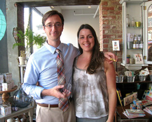 Nick Martinelli and Sarah Martinelli, newcomers to the Berkshires, now Richmond residents; Cookbooks, goats milk salted caramels, candles and kitchenware on display.
