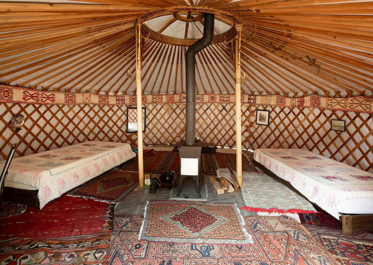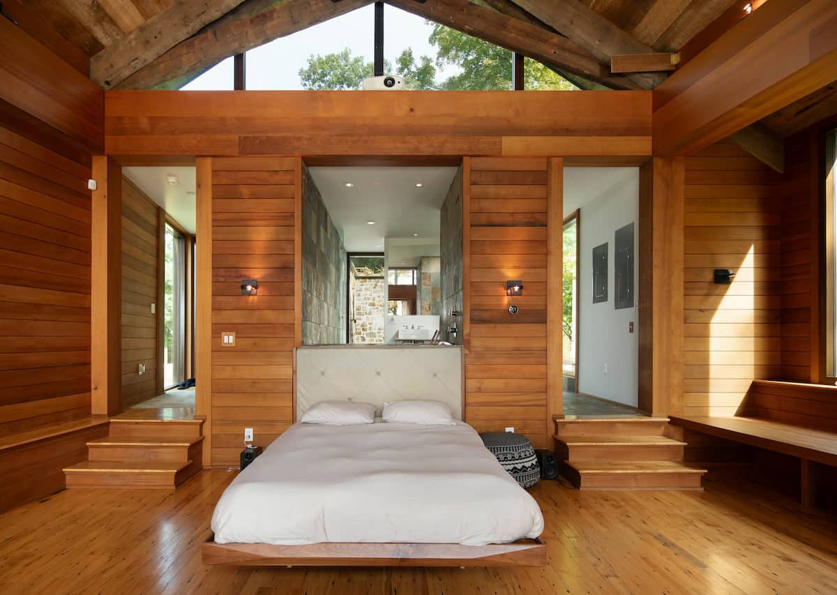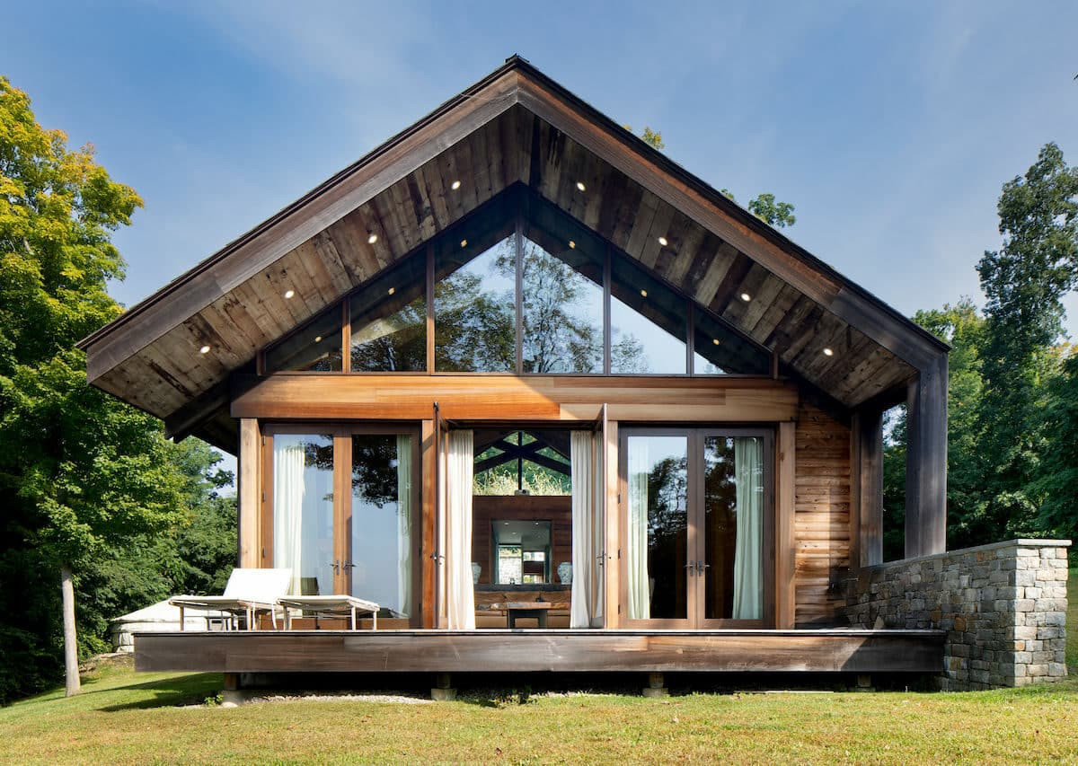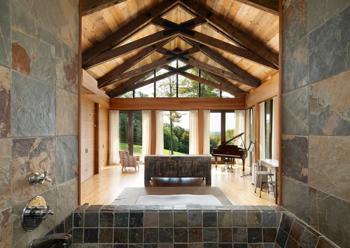 A one-bedroom, one-bathroom Contemporary in Amenia is sitting on nearly 15 acres with distant views. A large great room provides the bedroom and living room. The view is also seen from stone soaking tub, shower or outside shower with a stone surround. If you need room for guests, there is a Yurt with a wood stove. Listed at $795,000 by Elyse Harney Real Estate.