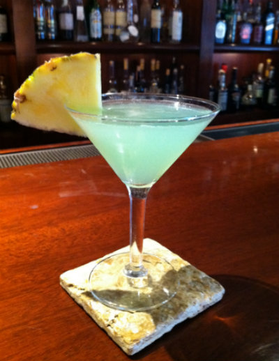 If patio furniture is popping up in all the stores now, can cocktails al fresco (or at least inside with the windows open) be far behind? Looking for a libation to welcome in spring, we went to Paula Boyajian, bar manager at The Gateways Inn in Lenox, who seems always to be concocting delightful seasonal drinks that complement the jazz in the piano bar. With the Gateways Inn just reopening after a short winter hibernation, Paula had been mixing up her magic, and was ready to share her latest creation, Michele’s Margarita, named in honor of the inn’s chef and owner, Michele Gazit. A blend of tequila, Hypnotiq, lime juice, pineapple juice and a splash of dry vermouth, its seafoam green hints of green grass and fresh breezes. And not a moment too soon. Michele's Margarita 1 part white tequila 2 parts Hypnotiq Liqueur ½ part Rose’s Lime Juice ½ part pineapple juice Splash of dry vermouth Fill shaker with ice and pour in all ingredients. Shake well until cold and pour into a martini glass. Garnish with a fresh pineapple spear.