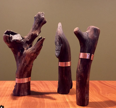 “I think it’s important for people that these are things they can wear every day,” Jenna says. “I like to imagine East Camp clients wear their jewelry through everything. I sleep in my jewelry. I garden in it. I find as a mother of small children you don’t always put on your best clothes but I can always slip on a gold ring and have a token of glamour.” Andy Fennell usually works on a larger scale than his wife, with wood and iron. A sculptor currently working for artist Dan Colen, he adds rustic, finely finished elements to East Camp's collection. The couple's collaborations, like the brass-banded driftwood tap handles they made for the Suarez Family Brewery are a clear example of the synergy of their artistic abilities. The busy couple and parents of two girls, Juniper Coyote, 2, and Fiona Kestrel, 6 weeks, run East Camp online out of their home, but you can see a few pieces in person at Alder East in Germantown and at the seasonal flea markets held at Basilica Hudson. They also do a good deal of commission work. Jenna says that she wants to help people make their own statement with her jewelry, not impose hers on them.