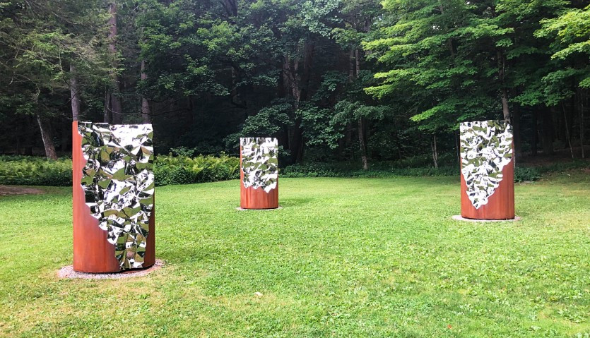 “Elemental Matters” is curated by photographer Cassandra Sohn, who is director of Sohn Fine Art in Lenox. The 12 large-scale metal sculptures have been placed around the Chesterwood property and sited so that each piece dramatically reflects the environment around it. The exhibit runs through October 24.