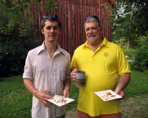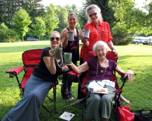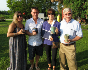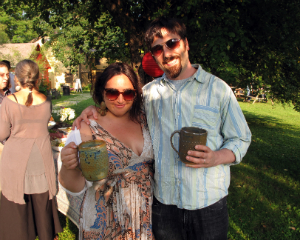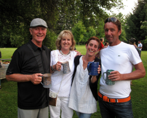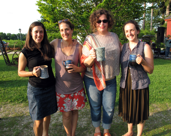 Amy Krzanik reports from Pittsfield.Alchemy Initiative sure knows how to pick a party spot, as evidenced by the choice of venues for its annual Empty Stein fundraiser. Last year, the Inn at Richmond hosted, and this year Herman Melville's Arrowhead had the honors on Monday, July 21. Alchemy board members greeted guests and led them to tables laden with colorful steins, each with a beer ticket inside. The difficult part wasn't drinking libations provided by Big Elm, Wandering Star and three homebrewers, or eating a fine spread of appetizers and On A Roll eggrolls, but in having to decide on only one mug out of the 100 on display. Local potters Daniel Bellow, Stephanie Boyd, Ray Bub, Lorimer Burns, Ben C. Evans and Michael McCarthy, as well as the artists mentioned below, created unique steins to commemorate the occasion. The evening also included a performance by Satellite Shine (with Wes Buckley on guitar and Jason Schultheis on drums). Proceeds from the fundraiser support Alchemy's year-round workshops, Handmade Holiday Festival and management of the Downtown Pittsfield Farmers Market. Pictured above, standing: Stacy Strain and Patricia Boissevain; seated: Jennet Cook and her mother Janet Cook.