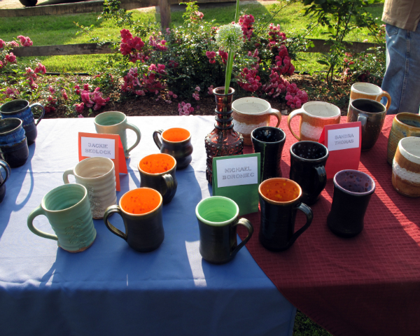 Just a few of the steins guests were able to choose from. Pictured are steins by Amrita Lash (far left), Jackie Sedlock, Michael Boroniec, whose work will be on display at Lauren Clark Fine Art starting July 26, and Sandra Thomas.
