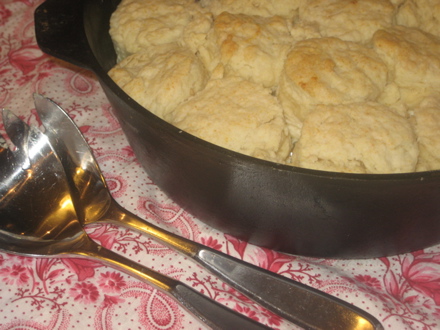 By Paige Orloff I've loved potpie since I was a little girl and my mother used to serve me the frozen ones as special lunch treats. (The fact that she'd do odd dances to entertain me while I endured their epic heating time in those pre-microwave days may have sweetened the memory, but only a bit.) As an adult, I discovered that potpie is one of those impressive-though-casual dishes that is way, way easier to make than it appears. You don't even have to be able to make a decent crust (though that, too, is one of those things that is much simpler than most people think). As a friend suggested, you can easily purchase frozen puff pastry to top your pie. This produces impressive, company-worthy results with next to zero effort. (Can you open a box? You're set.) But the nearly-as-easy alternative is to make biscuits to top your homemade chicken stew. This Southern-influenced version of potpie is delicious, and a fine recipe to put together all at once, or to prepare in stages over a day or even a couple of days. Children will eat it, adults will marvel, and if you're the kind of person who finds herself with stray vegetables in the produce drawer or in half-bags in the freezer, you can have the virtuous joy of cleaning house as well. Don't get too obsessive about quantities of anything—except when making the roux—and you'll do fine. Chicken and BiscuitsServes 6For the chicken stew:1 roasting chicken, about 4-5 lbs 6 ribs of celery — two left whole, the rest sliced 3 onions — one peeled and sliced in half; the others chopped into coarse dice 6 carrots—two left whole, the rest cut into 1/4 inch rounds 2 - 4 cups of other veggies to your taste: diced potatoes, parsnips or winter squash, frozen peas, pearl onions or mushrooms would all work. 1 bay leaf 10 peppercorns salt to taste 1/4 c. flour 2 T butter 2 T olive oil Water First, make the stock. Put the chicken (rinsed, giblets, if any, removed) into a large stockpot with the whole celery, whole carrots, halved onion, bay leaf, peppercorns, and a teaspoon or so of salt. Cover with water, bring to a boil, then turn down the heat and leave to simmer for an hour. Remove the chicken to a bowl to cool, and strain the stock into another pot to cool.You'll probably have a couple of quarts, most of which you'll save for making soup or risotto another day. While the chicken is cooling, make the roux. In a small saucepan, melt the butter over low heat so as not to burn it. When it starts to bubble and foam a bit, add the flour and stir vigorously. Cook the mixture over low-medium heat until it becomes fragrant, and a tiny bit golden, but not brown. Now add about a half cup of your warm stock, and whisk to combine. Cook until it thickens, and then repeat by adding additional half cups of stock, allowing the sauce to thicken before adding more liquid until you've incorporated about 3 cups of stock altogether. Don't worry if it's not extremely thick when you've finished adding the liquid. You're going to keep cooking it down, and it will thicken on its own. Let the sauce simmer over low heat while you prepare the chicken and the rest of the vegetables. If the chicken is now cool enough to handle, remove all the meat you can from the bones with your fingers. Pull apart into manageable pieces, but don't get crazy. You can eat this with a knife; the pieces don't have to be perfectly bite sized. Now prepare the vegetables. Heat the olive oil for a couple on minutes in a Dutch oven (which you'll bake the dish in so it needs to be oven safe.) Add the chopped onion, celery and carrots. (If you're using mushrooms, add them now, too.) Sauté until the vegetables are just starting to soften, but still retain their color. Pour in the sauce, and continue to simmer over low-medium heat while you make the biscuits, and until all the vegetables are fork-tender. (If you're using potatoes, parsnips or squash, add now so they have time to cook through. Pearl onions, too. Frozen peas should be added at the very last minute before the dish goes into the oven, so they keep some nice color.) For the biscuits:2 c. flour, preferably White Lily Self-Rising (hard to find unless you live in the South, but you can buy it online—see below.) 2 t baking powder 1 t salt 1 stick butter, cold, and cut into 1/2 chunks 2/3 c milk or buttermilk (low fat is fine) 2 T melted butter Preheat the oven to 500 degrees F. Stir flour, salt and baking powder together to combine. (If you're using White Lily, you can even omit the baking powder, but if you use it, that's okay, too.) Using a pastry blender or two knives, cut in the butter until the mixture resembles coarse crumbs. This will take five or ten minutes—don't lose heart! Just when you're cursing the effort, the texture will magically change. Stir in the milk until the mixture pulls away from the sides of the bowl. Turn out onto a lightly floured board, and knead two or three times. Roll out to a thickness of 1/2 inch, and using a two-inch circle cutter, cut by pressing down without turning. Cut and re-roll until you've used up all the dough. You should have 12 - 15 biscuits. Now it's time to put everything together. Remove the pan from the heat and stir the shredded chicken into the pot. Add a half cup or so of frozen peas if you're using them. Taste the sauce for seasoning and add salt and freshly ground pepper as needed. Place the biscuits on top to cover, and brush their tops with molten butter. Place in the oven, uncovered, and bake for 12 to 15 minutes until the biscuits are golden brown. Keep an eye on it; depending upon your oven, it could only take 10 to 12 minutes. Enjoy the meal, and the accolades. Note: Buy White Lily flour online here. I use White Lily Self-Rising for biscuits.
